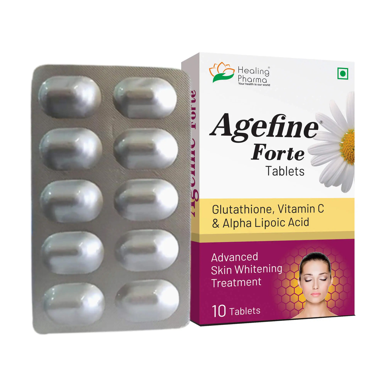 에이지파인 포르테는 글루타티온, 비타민 C, 알파리포산을 함유한 경구용 항산화 보충제로, 피부의 건강과 미백 효과를 동시에 제공합니다.